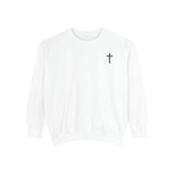 Introducing a cozy unisex sweatshirt that blends comfort and style seamlessly. Made from 80% ring-spun cotton, this medium-heavy fabric offers a soft and luxurious feel against your skin. The relaxed fit ensures you can wear it all day, whether you’re lounging at home or out with friends. Featuring a unique back design that emphasizes your faith, this sweatshirt radiates a welcoming atmosphere, perfect for those who cherish their beliefs. Ideal for anyone looking to express their spirituality, it's a thoughtful gift for friends or family during holidays like Christmas or Easter, or for special occasions such as baptisms and church gatherings. Embrace comfort and faith in your everyday wardrobe with this stylish sweatshirt.