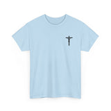 This T-Shirt features a design of juses and the cross, giving off a spiritual and religious vibe. It is perfect for those looking to express their faith and beliefs through their clothing. Ideal for religious holidays, church events, and everyday wear for believers.